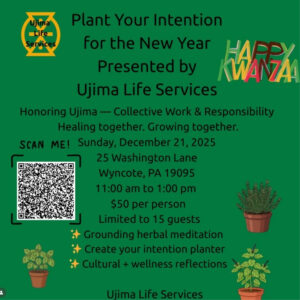 Ujima Life Services invites you to Plant Your Intention for the New Year, a transformative workshop designed to help you begin 2026 with clarity, purpose, and community support. Rooted in the principles of Ujima—collective work and responsibility—this gathering honors the African-centered value of healing and growing together.